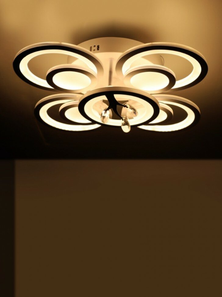 Люстра с пультом светодиодная потолочная 176W, 8 ламп, цветок, большая, белая, LEDCITY