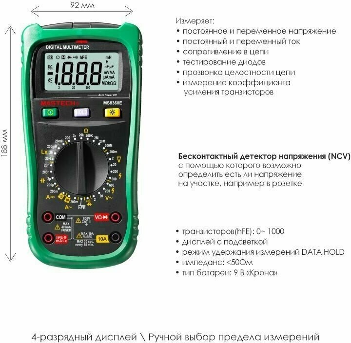 Ниже Вы можете прочитать отзывы на Мультиметр Mastech MS8360E с измерением емкости и индуктивности, прозвонка цепи, ознакомится с подробными характеристиками, посмотреть интересные обзоры и фотографии на Мультиметр Mastech MS8360E с измерением емкости и индуктивности, прозвонка цепи.