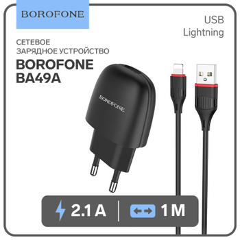 Сетевое зарядное устройство Borofone Ba49a, 1хUSB, 2.1 А, кабель Lightning, 1 м, черный Borofone 763