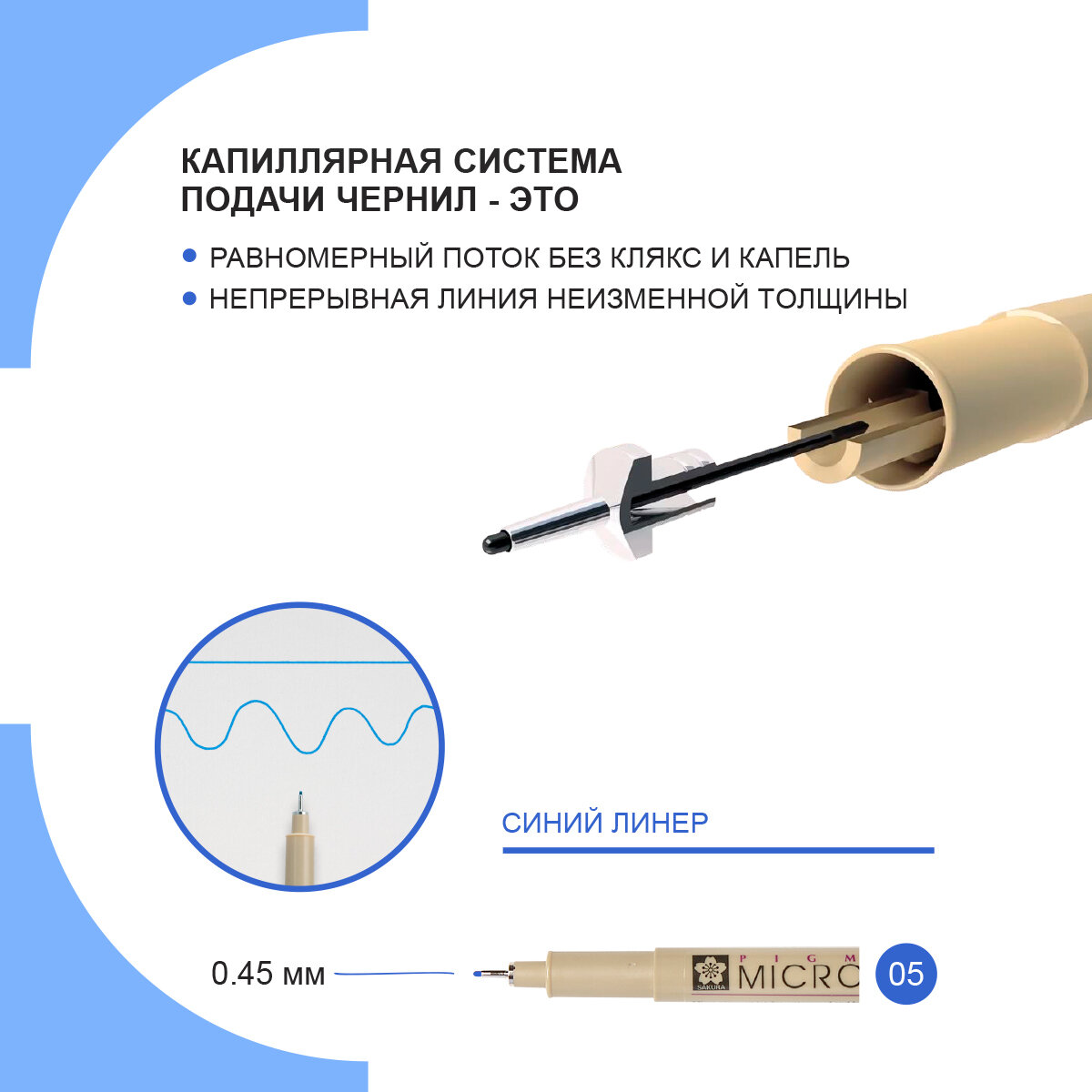 Ручка-линер капиллярная Pigma Micron, 0,45 мм., цвет чернил: синий