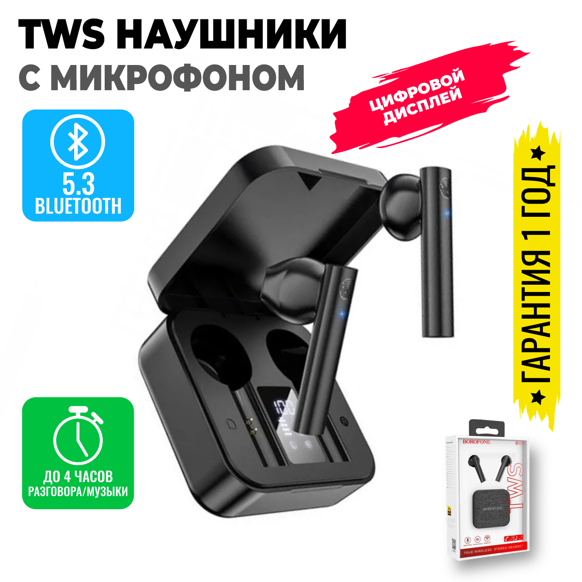 Borofone (6931474741233) BE40 Triumph TWS Black . интересное: