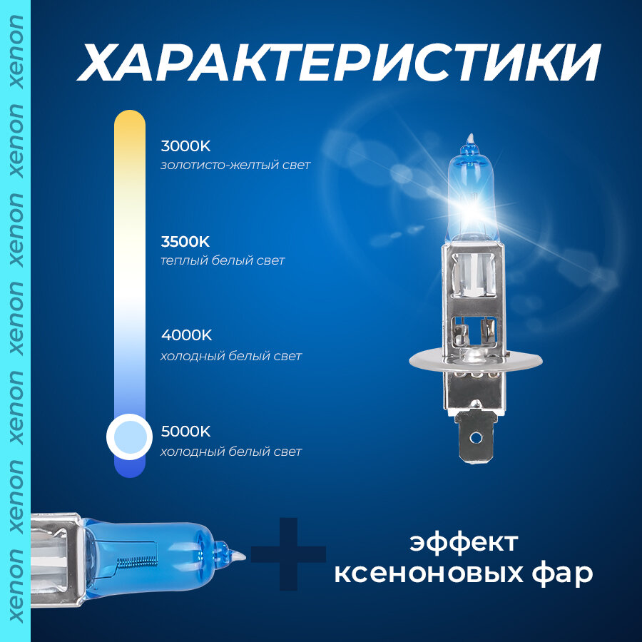 Лампа галогенная Kraft Pro Xenon H1 12V 55W, 2 шт.