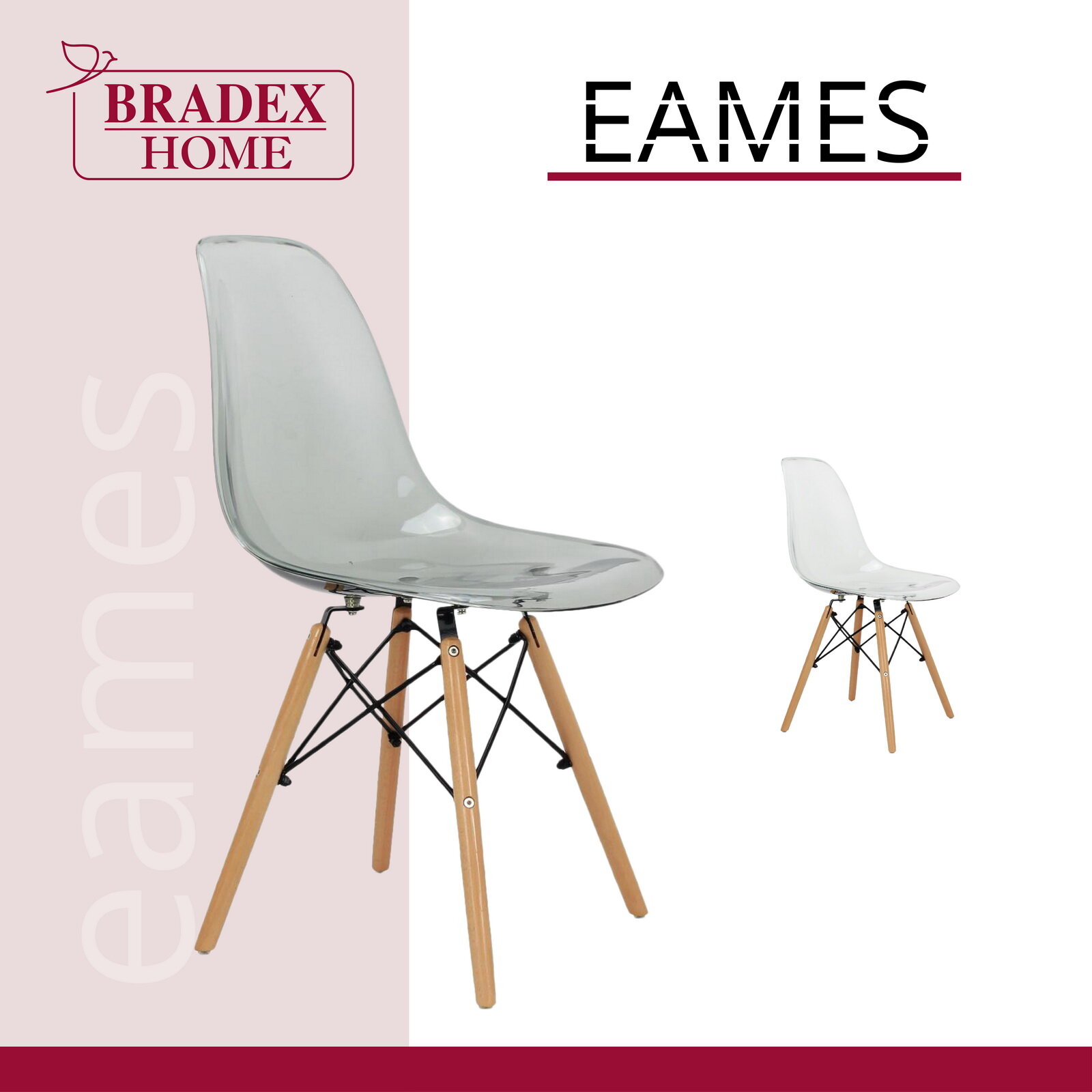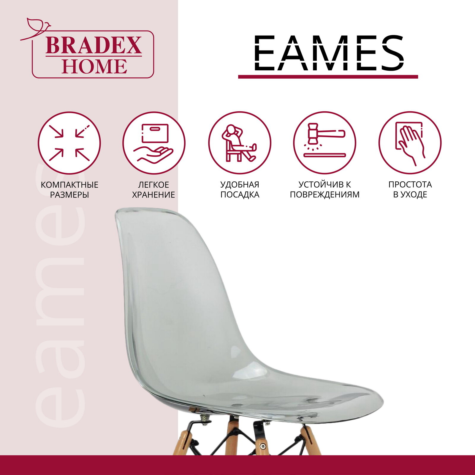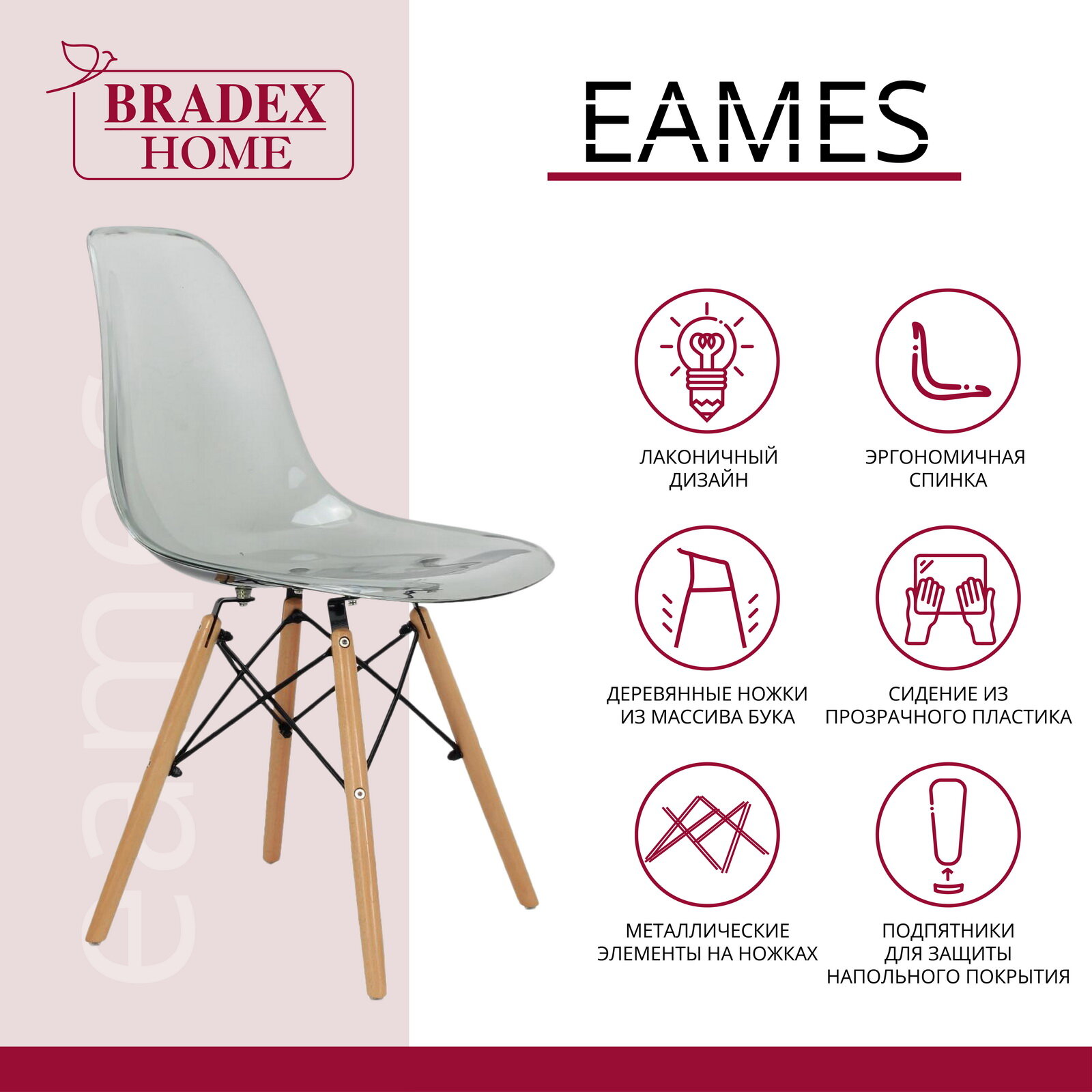Стул Eames BRADEX HOME прозрачный, пластик, дерево, твердое сиденье, без подлокотников