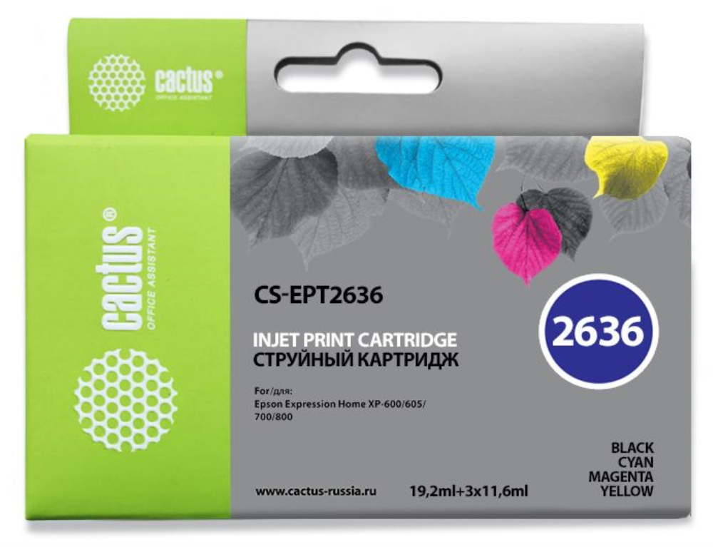 Картридж CACTUS CS-EPT2636 для Epson Expression Home XP-600/605/700 4 картриджа многоцветный