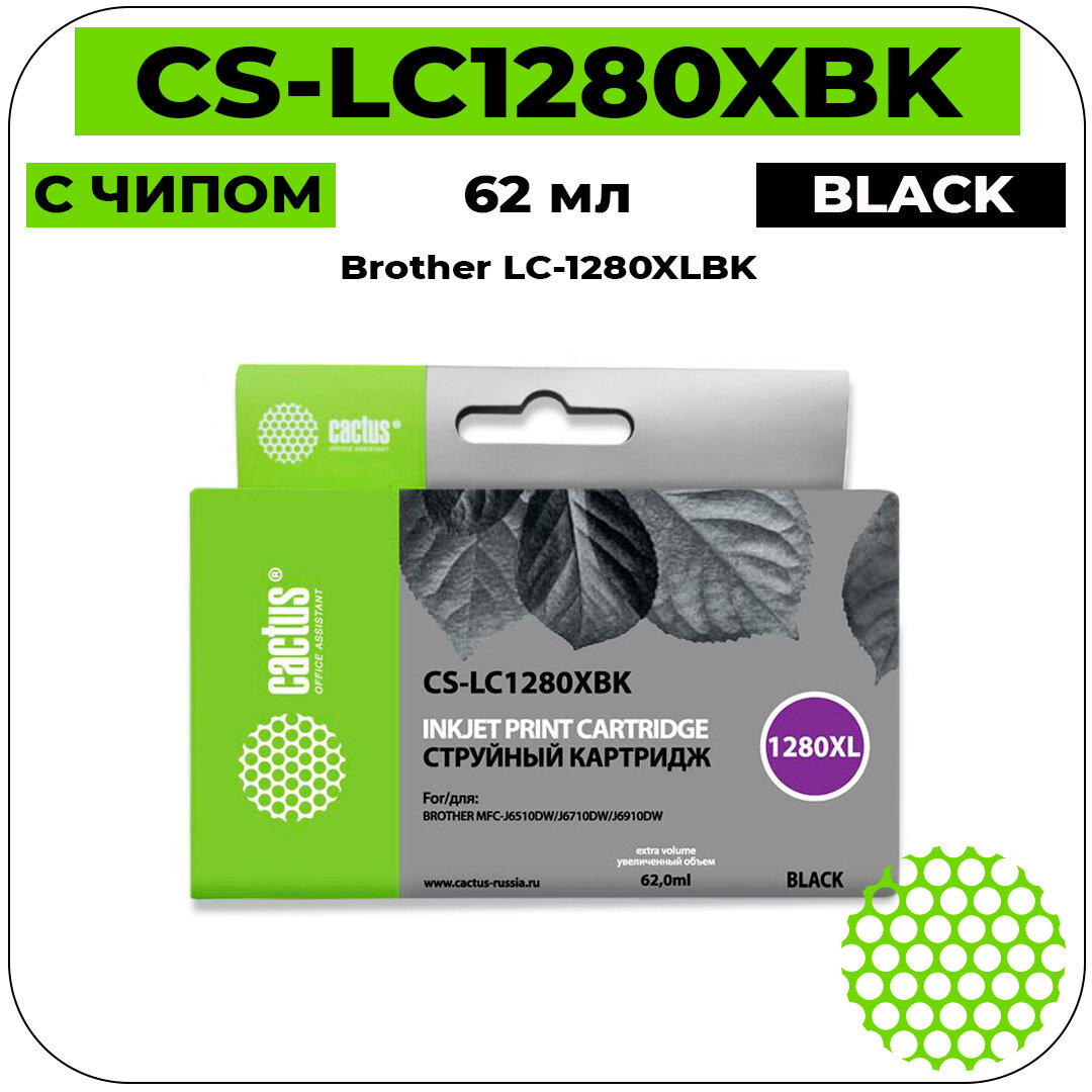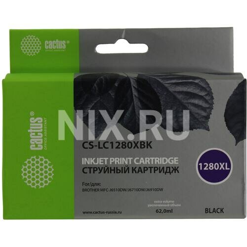 Картридж струйный Cactus CS-LC1280XBK черный (62мл) для Brother MFC-J6510/6910DW