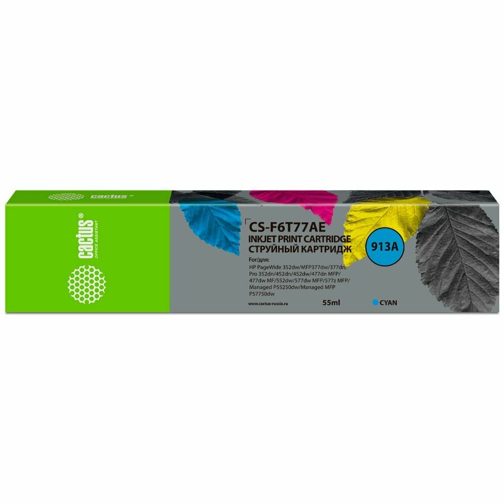 Картридж Cactus Cs-f6t77ae 55ML Cyan PW 352dw/377dw/Pro 477dw/452dw .
