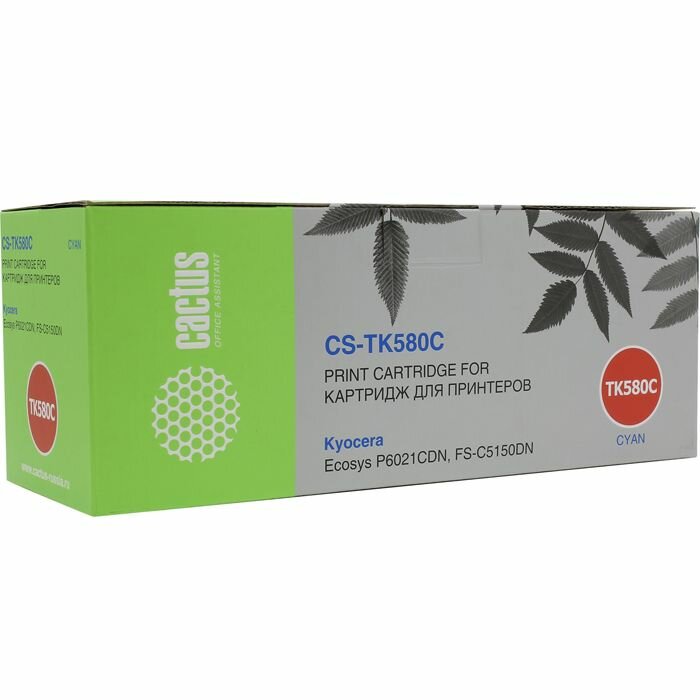 Тонер-картридж Cactus (CS-TK580C), для KYOCERA FS-C5150DN/P6021CDN, голубой, ресурс 2800 страниц