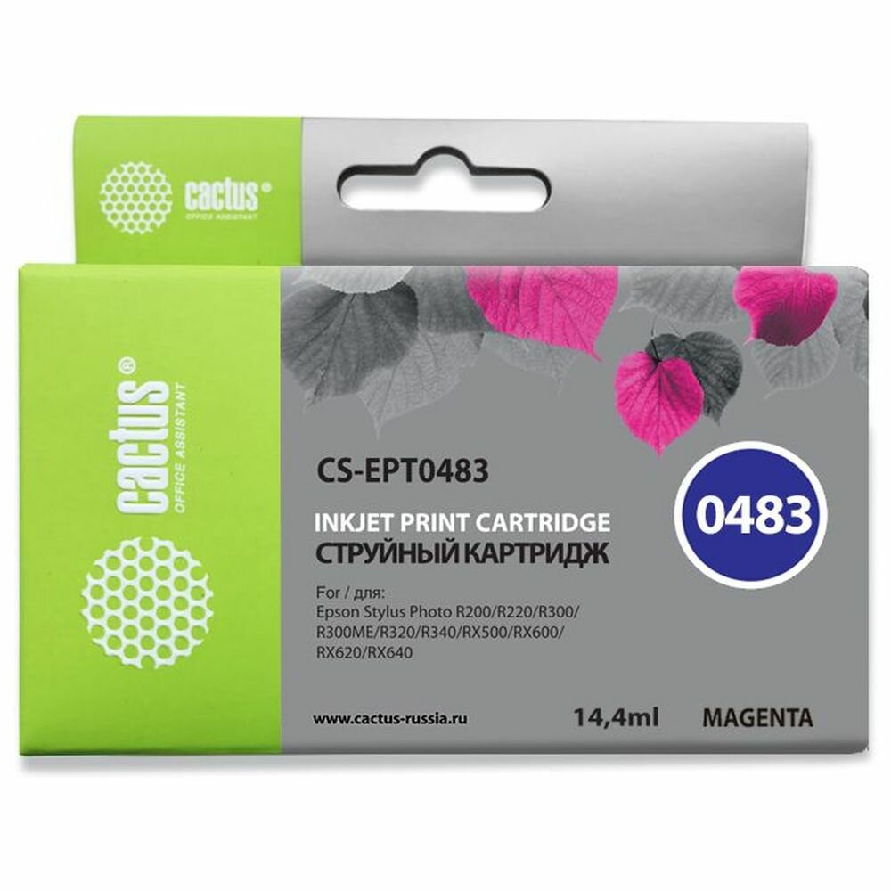 Картридж струйный Cactus CS-EPT0483 пурпурный для Epson Stylus Photo R200/R220/R300/R320/R340/RX500/RX600/RX620/RX640 (14.4мл) CS-EPT0483