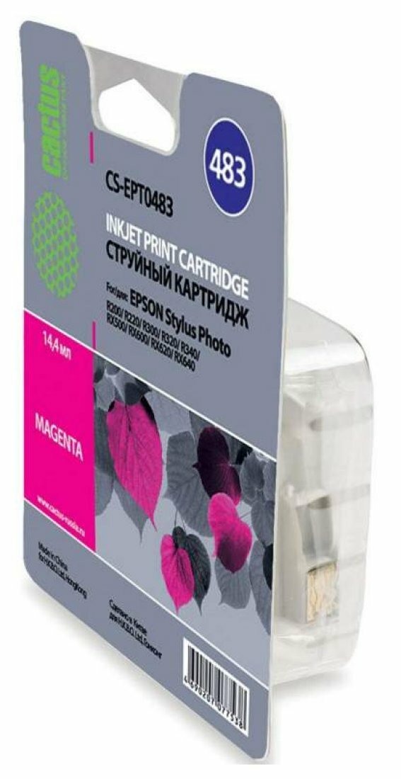 Картридж струйный Cactus CS-EPT0483 T0483 пурпурный (14.4мл) для Epson Stylus Photo R200/R220/R300/R320/R340/RX500/RX600/RX620/RX640