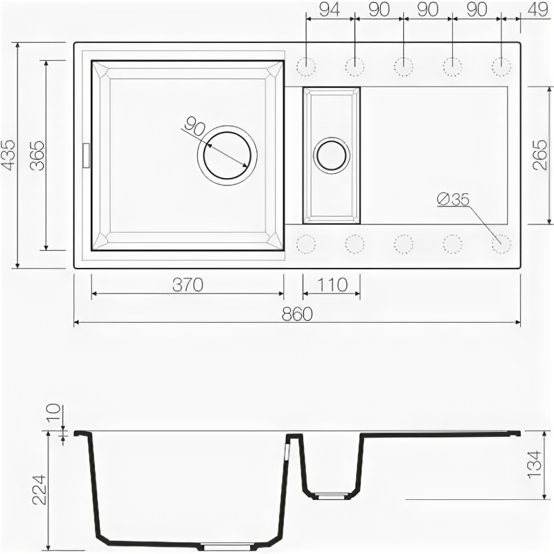 | Плюсы: | Двусторонняя, можно крутить крыло в нужную вам сторону (справа или слева), несколько установочных мест под кран, второй отсек для мытья овощей-фруктов, там же можно поставить измельчитель. |