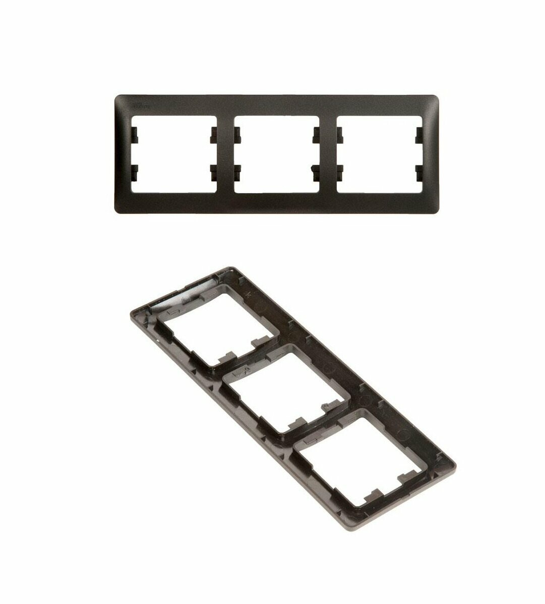 Рамка электроустановочная тройная для розетки и выключателей горизонтальная Systeme Electric / Schneider Electric Glossa, Антрацит (черный) GSL000703 (комплект 2шт)