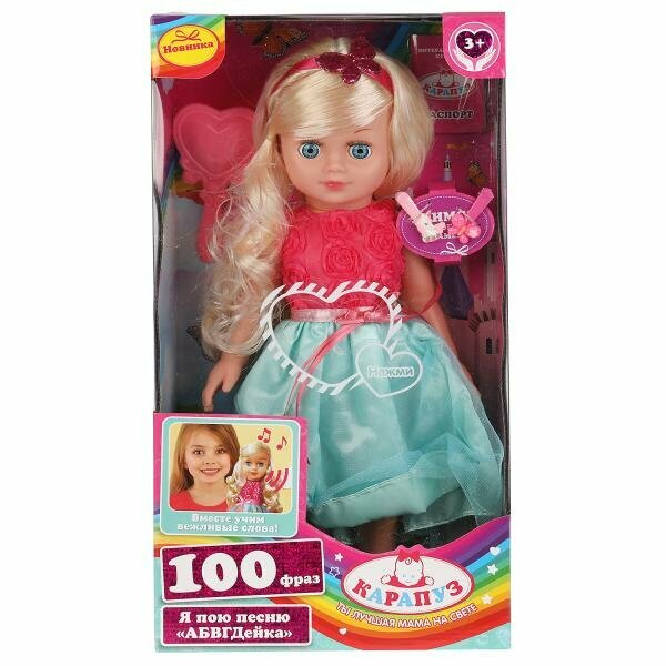 Игрушки карапуз Кукла озвученная абвгдйка песня Милана 40см, в комплекте 2 заколки, расческа карапуз