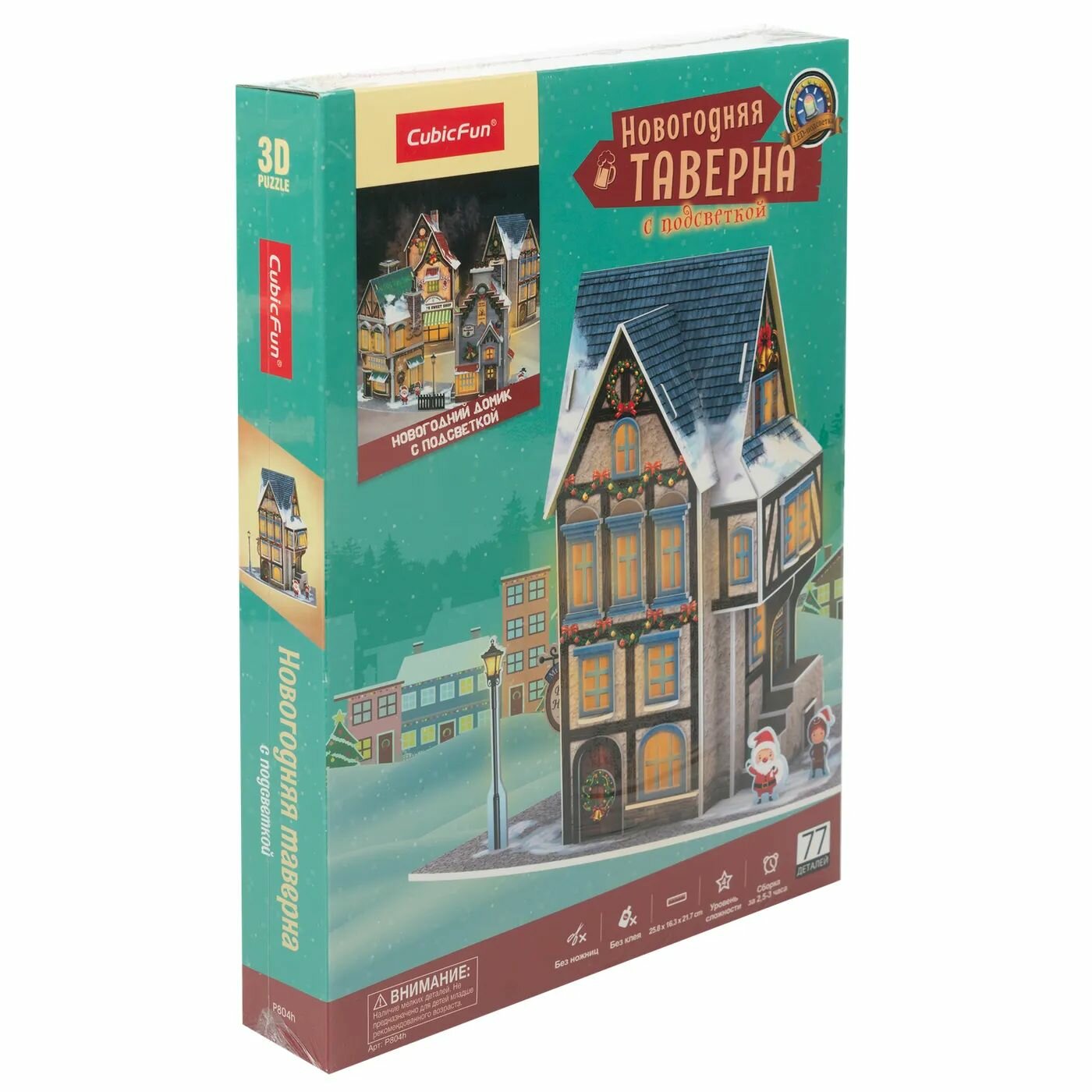3D пазл CubicFun Новогодняя таверна с LED-подсветкой, 77 деталей