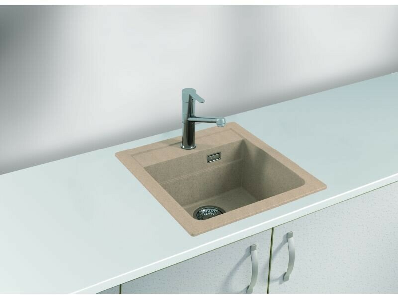 Раковина для кухни врезная каменная Alveus Granital Atrox 20 G55 47 X 50 / кухонная мойка накладная из искусственного камня, гранит, бежевый