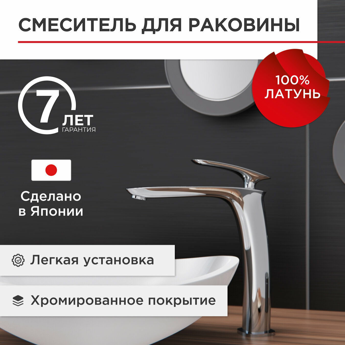 Смеситель для раковины с высоким изливом TOKITO TOK-FUJ-1012 серия FUJI, латунный, хром