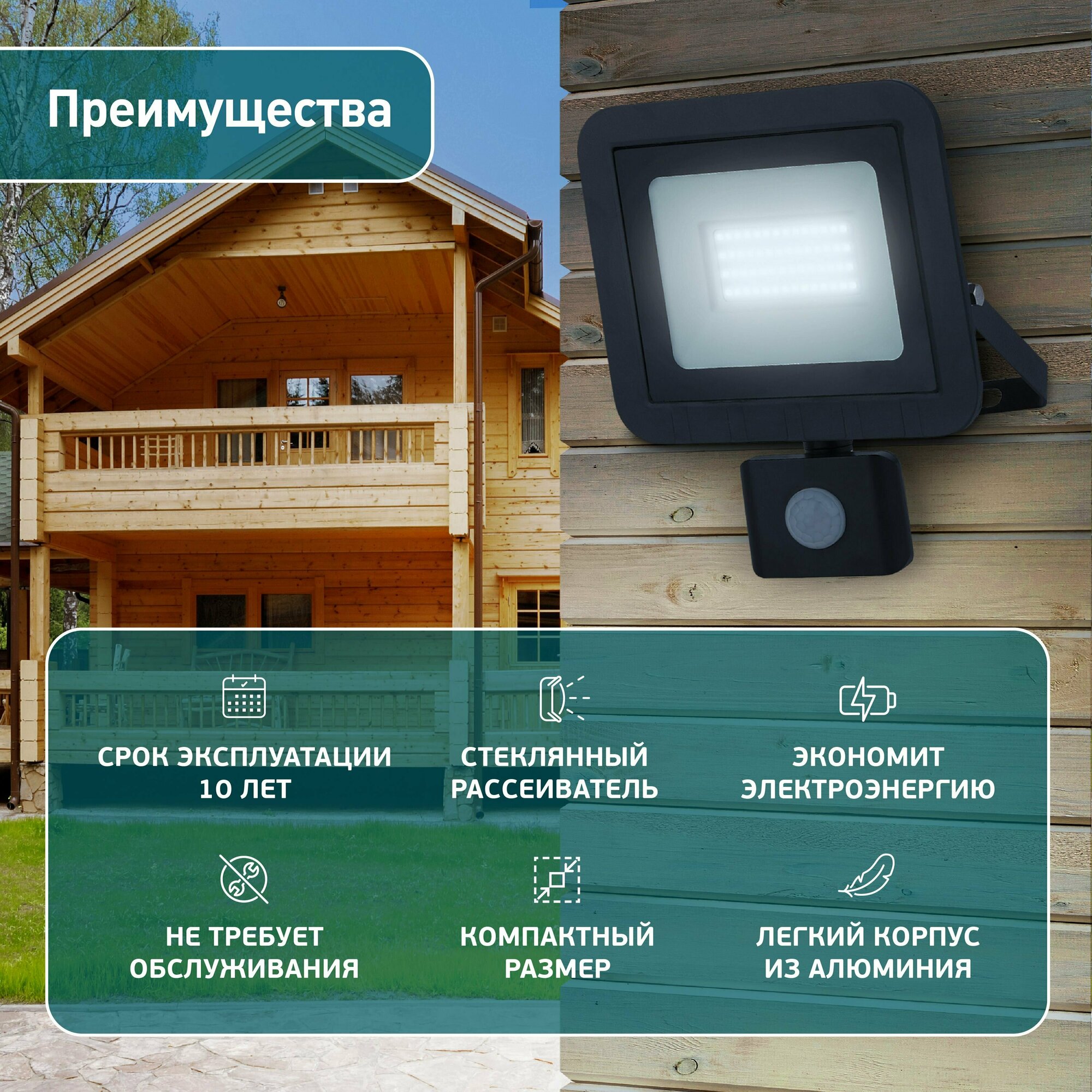 Прожектор светодиодный Эра LPR-02 6500К 30 Вт IP65 с датчиком движения черный (LPR-041-2-65K-030)