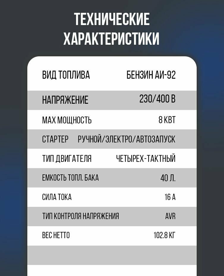 | Дополнительная информация | автозапуск (с помощью блока автоматики производится автоматический запуск) |