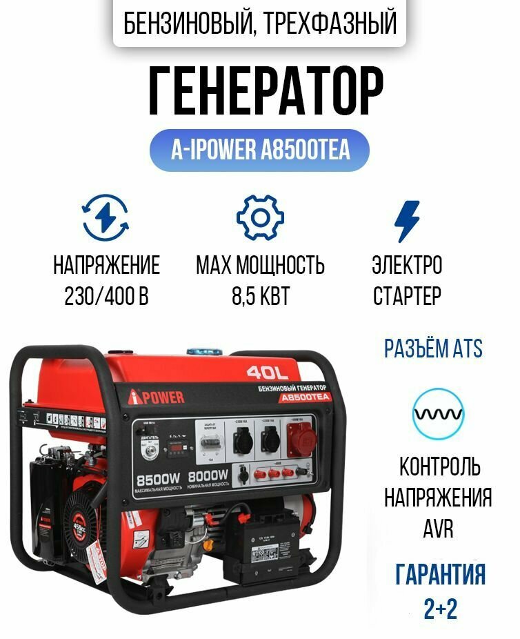 Генератор бензиновый A-iPower A8500ТEA (8кВт, 400В/50Гц, электростартер, разъем ATS)