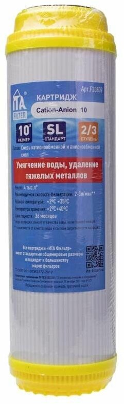 ITA Filter F30809 Картридж Cation-Anion 10, 1 шт. интересное: