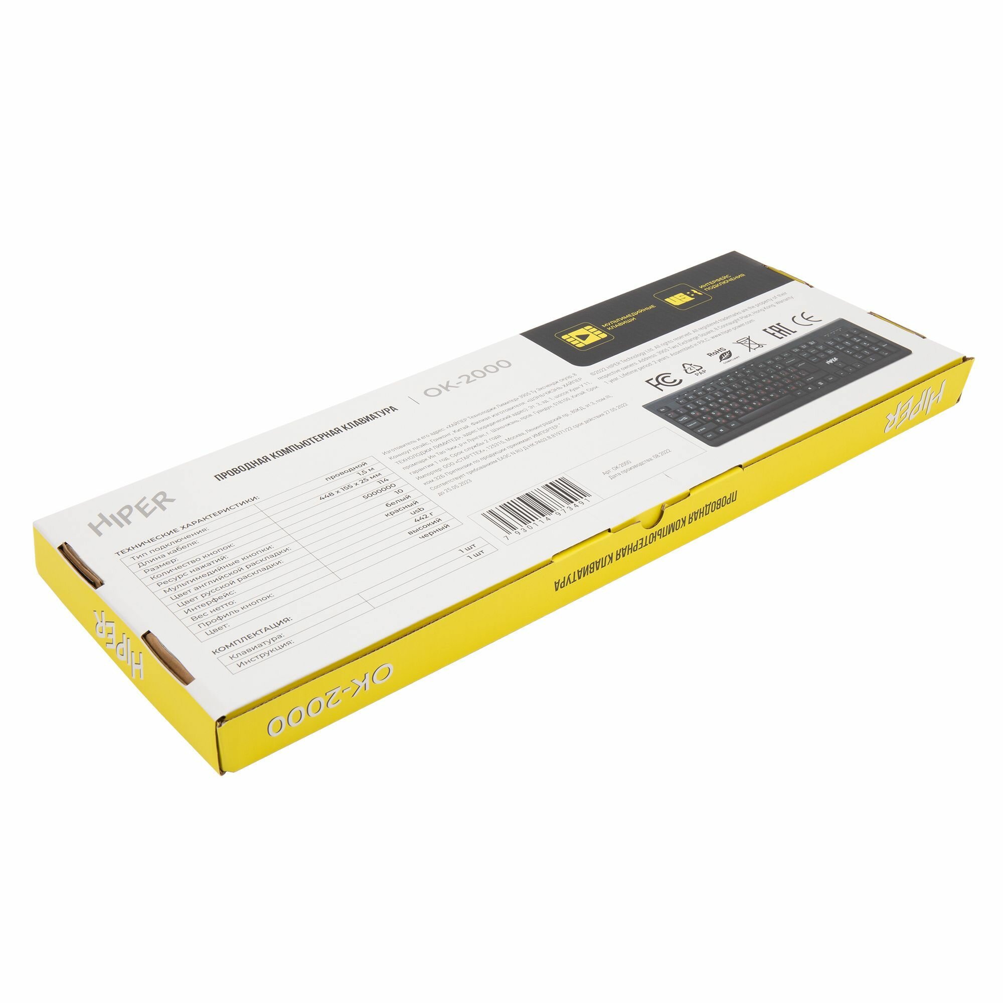 Проводная клавиатура HIPER OK-2000 / мембранная / USB / 114 клавиш / 1,5 м
