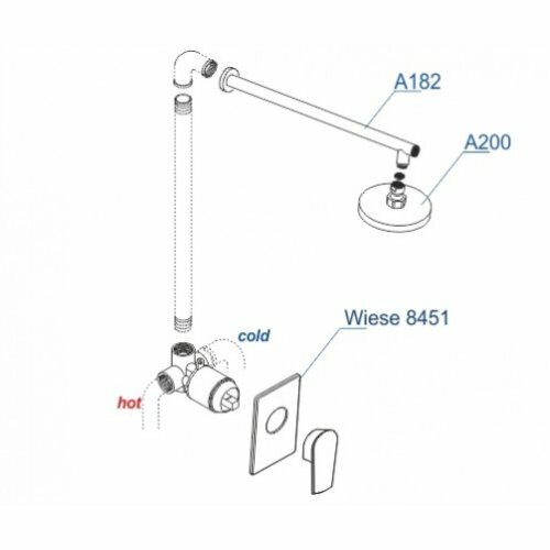 | Комплектация | Смеситель для душа Wiese 8451 Верхняя душевая насадка A200 Настенный верхний излив для душа A182 |