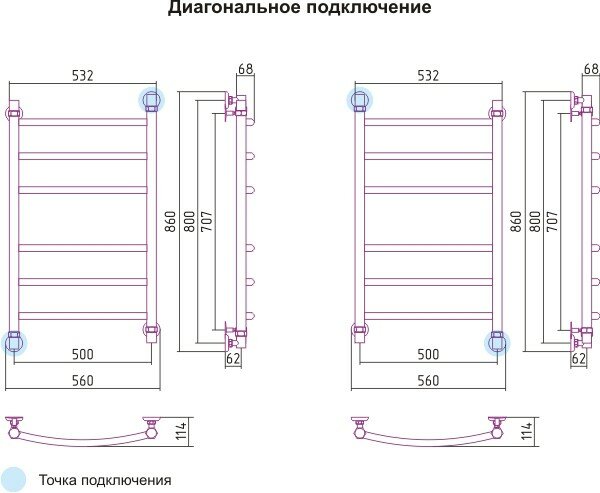 Водяной полотенцесушитель Aquanet Mauro(г2) 800x500