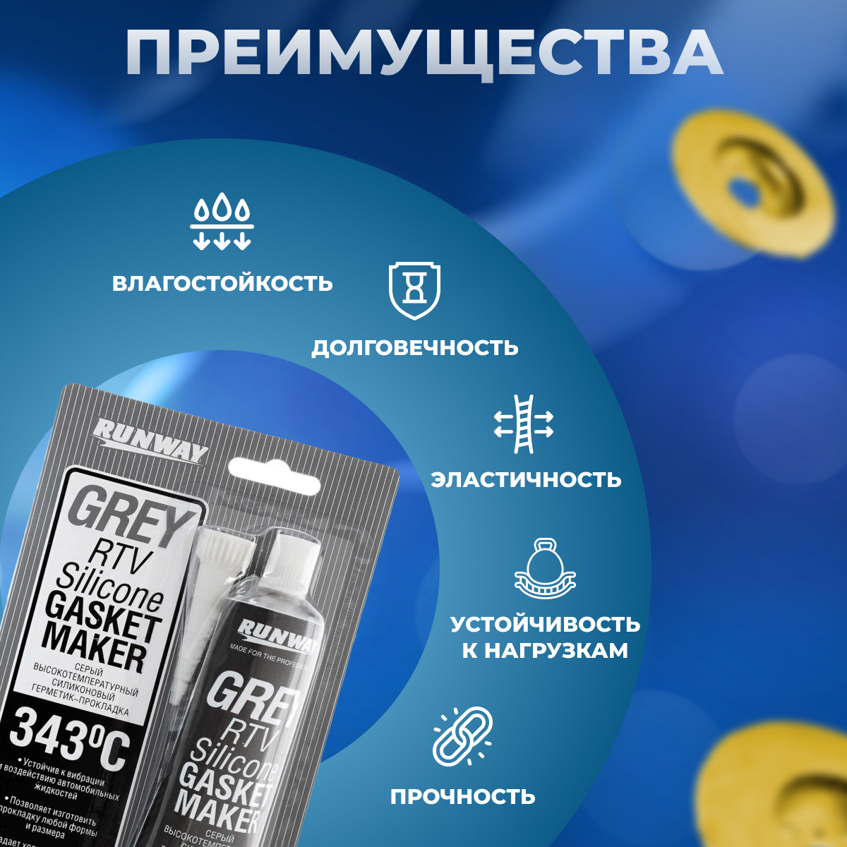 RUNWAY rw8503 силиконовый герметик-прокладка серый 85г интересное: