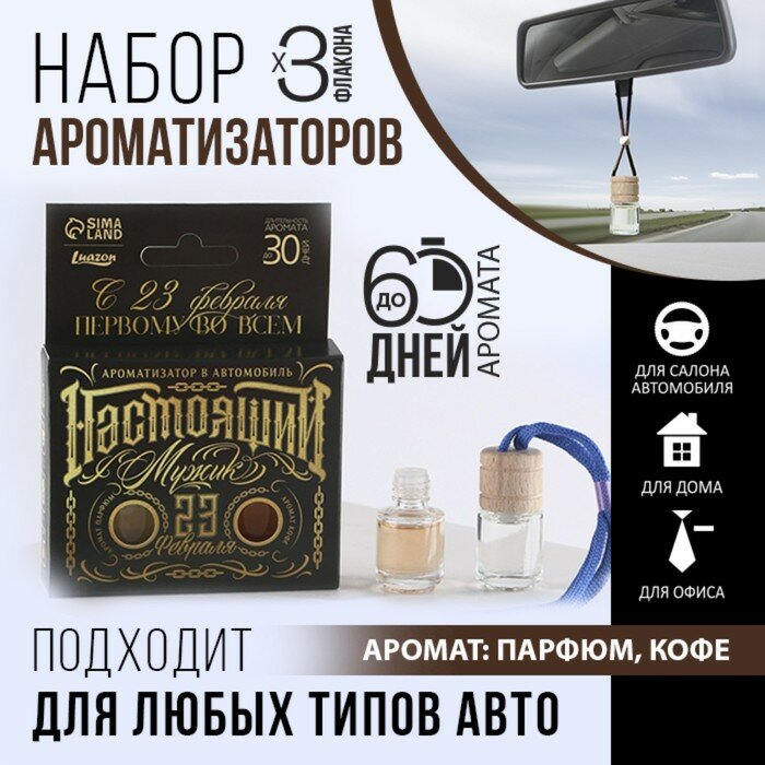 Ароматизаторы автомобильные Luazon - Первому во всем, аромат кофе/парфюм, 2 шт в наборе