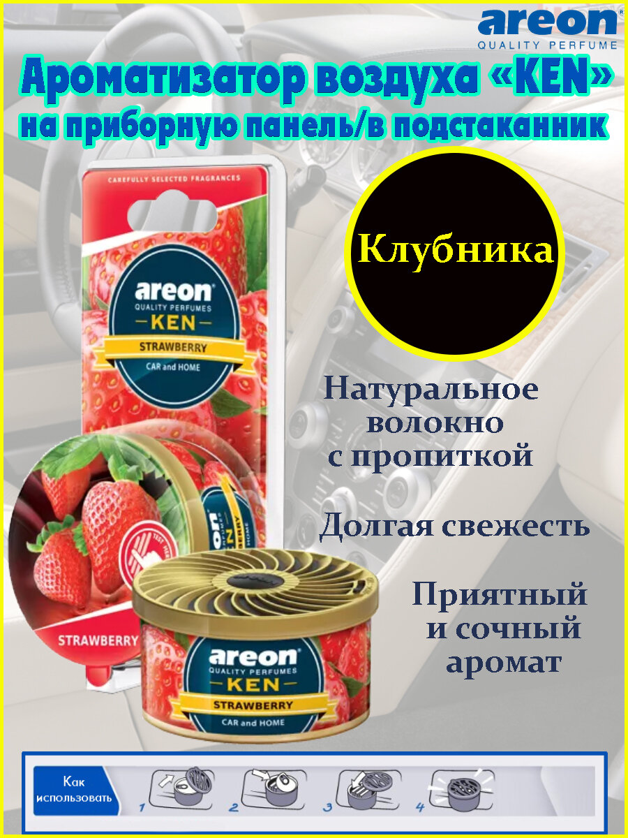 Ароматизатор На Панель Ken Blister Клубника AREON арт. 704-AKB-01