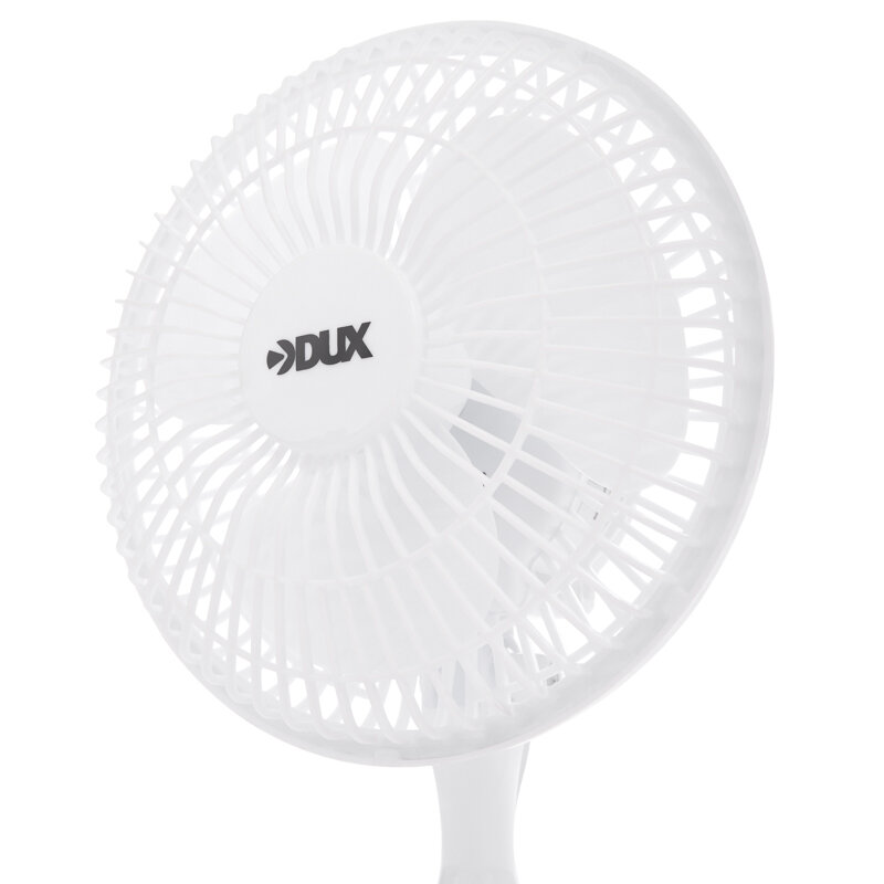 Вентилятор настольный DUX DX-614 60-0211 прищепка, 15 Вт, 15 см лопасти, 19 см решетка, белый