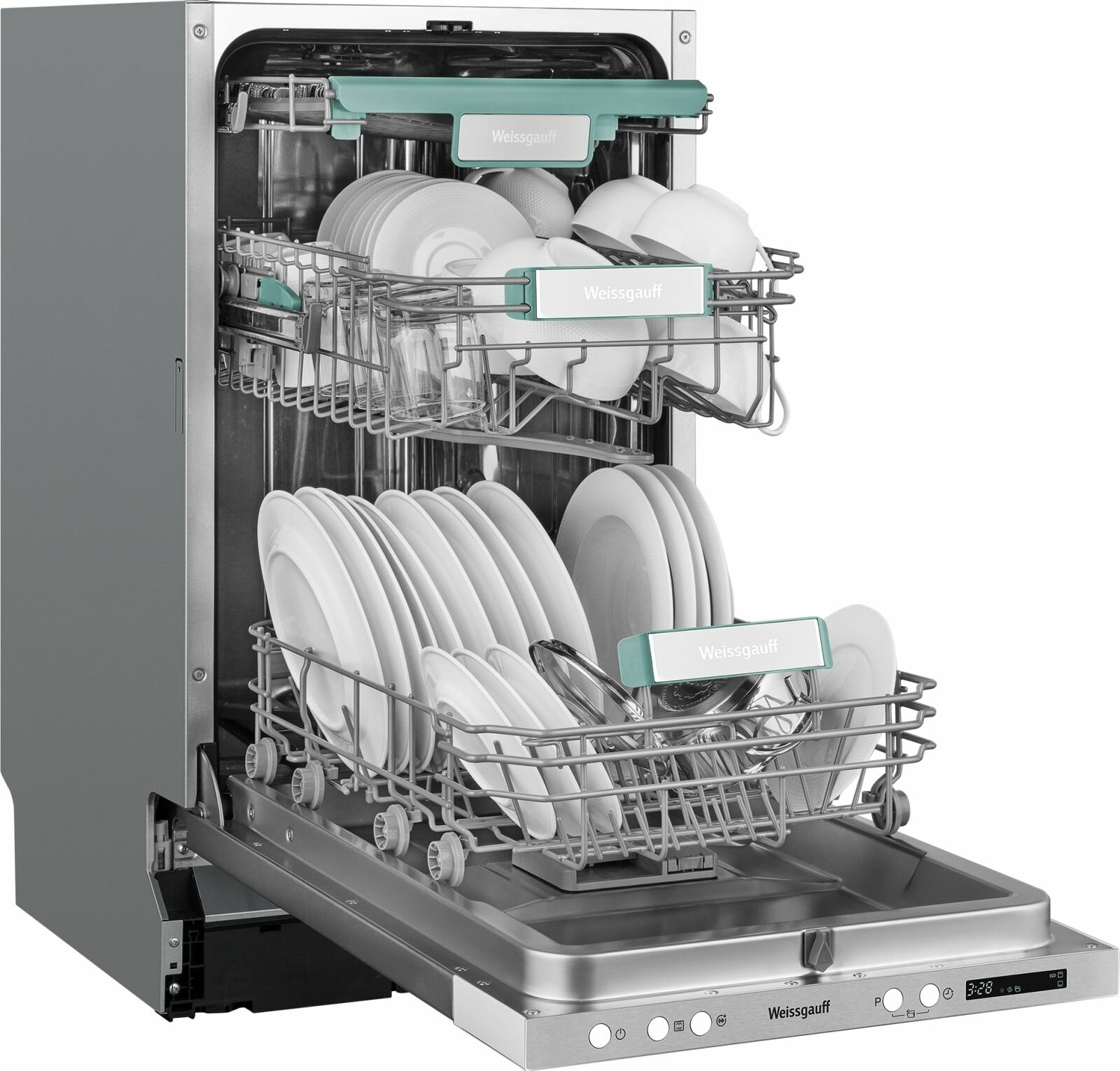 Встраиваемая посудомоечная машина WEISSGAUFF BDW 4573 D, узкая, ширина 44.8см, полновстраиваемая, загрузка 10 комплектов