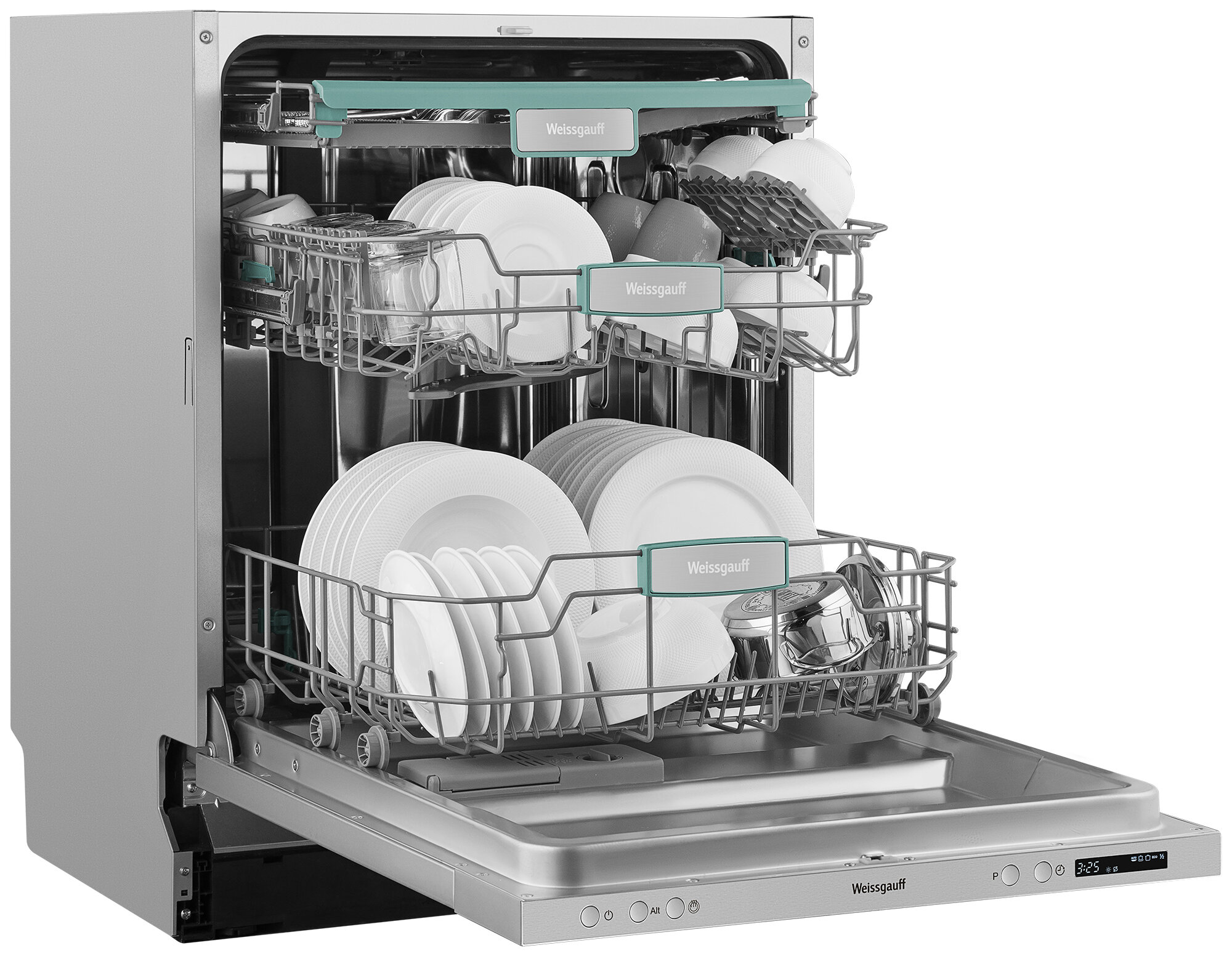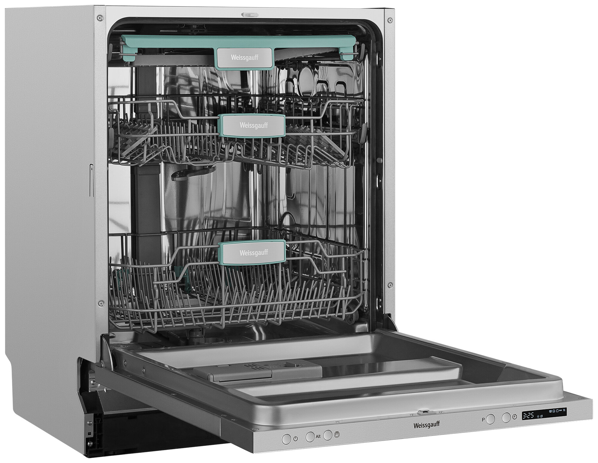 Встраиваемая посудомоечная машина WEISSGAUFF BDW 6138 D, полноразмерная, ширина 59.8см, полновстраиваемая, загрузка 14 комплектов интересное:
