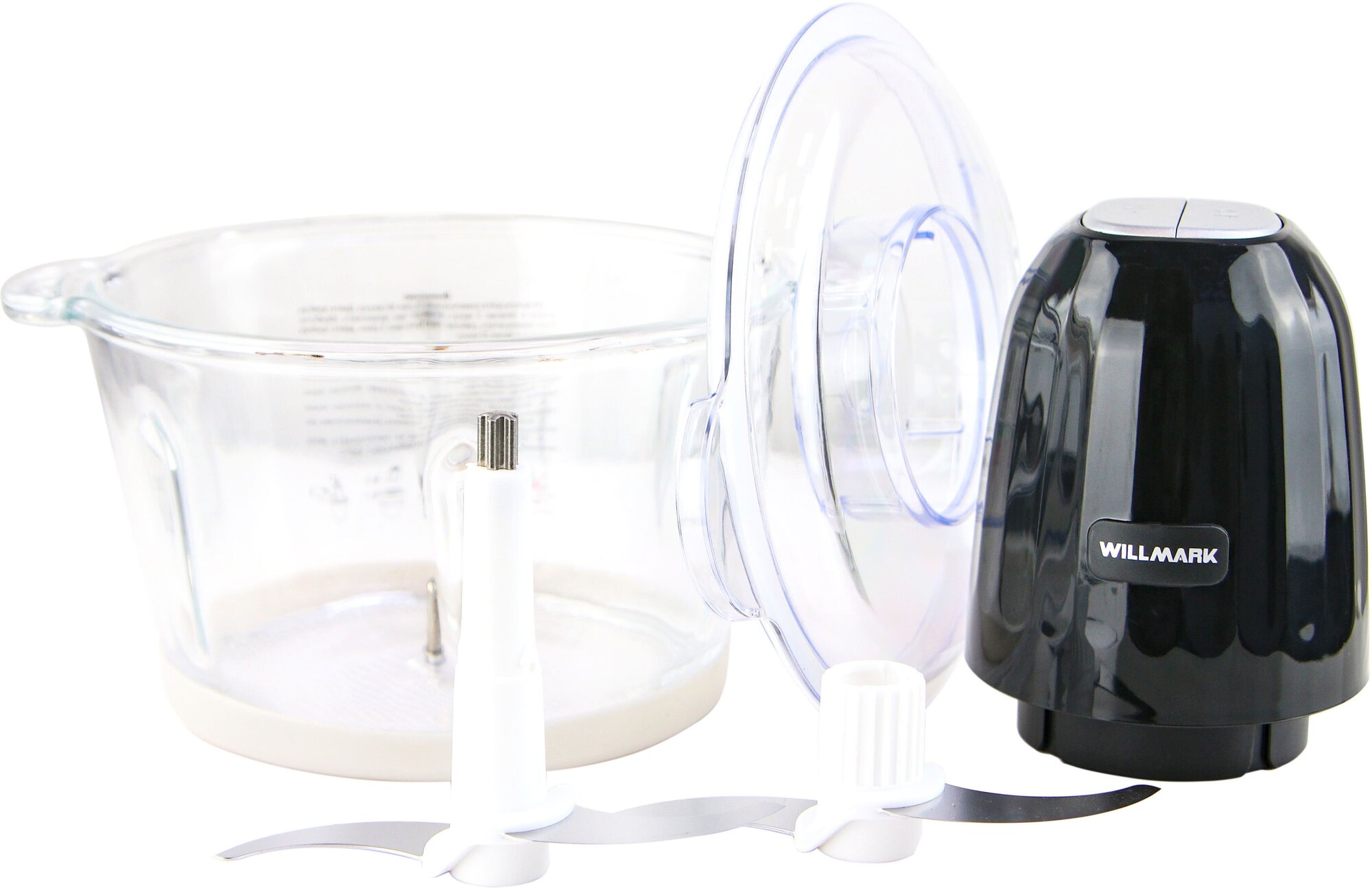 Измельчитель WILLMARK WMC-7088, стекло, 500 Вт, 2 л, 2 скорости, чёрный 9484822