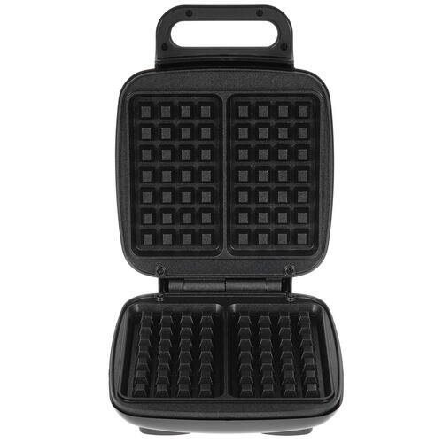 Отличная мощная вафельница на две вафли, размер вафель стандартный. Есть удобная ручка, сильно не перегревается при работе.