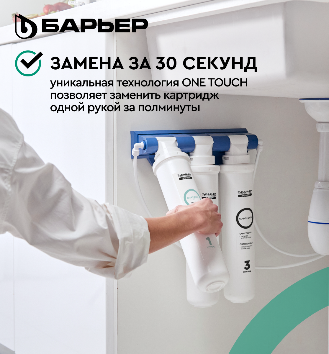 БАРЬЕР эксперт Жесткость х2, комплект картриджей для фильтра под мойку, двойная защита от накипи, быстросъемные