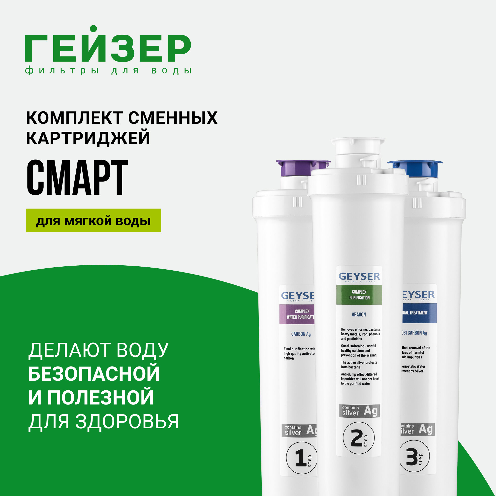 Комплект картриджей Гейзер Смарт / Арагон / универсальный для жесткой воды, 50094