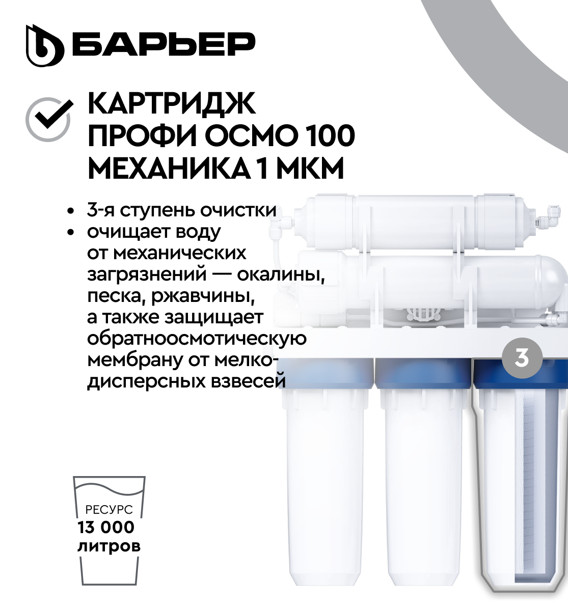 БАРЬЕР профи осмо Механика 1 мкм, картридж для обратноосмотического фильтра под мойку, удаляет механические загрязнения, SL10