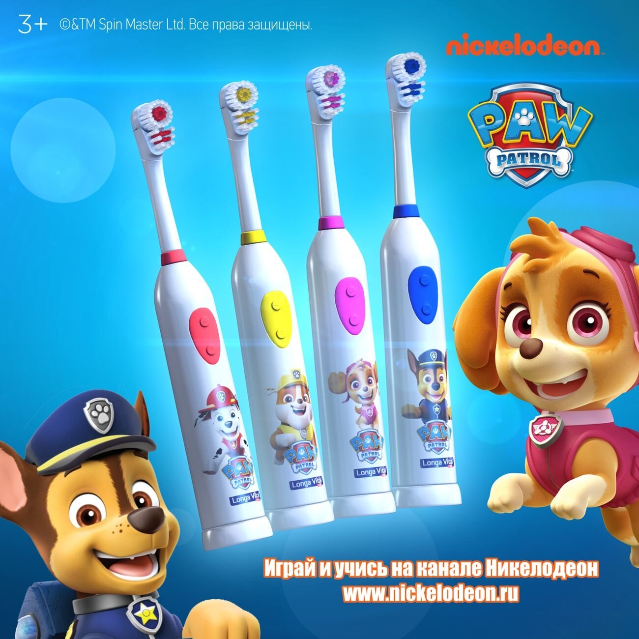 Электрическая зубная щетка детская Longa Vita Щенячий патруль ротационная + сменная насадка