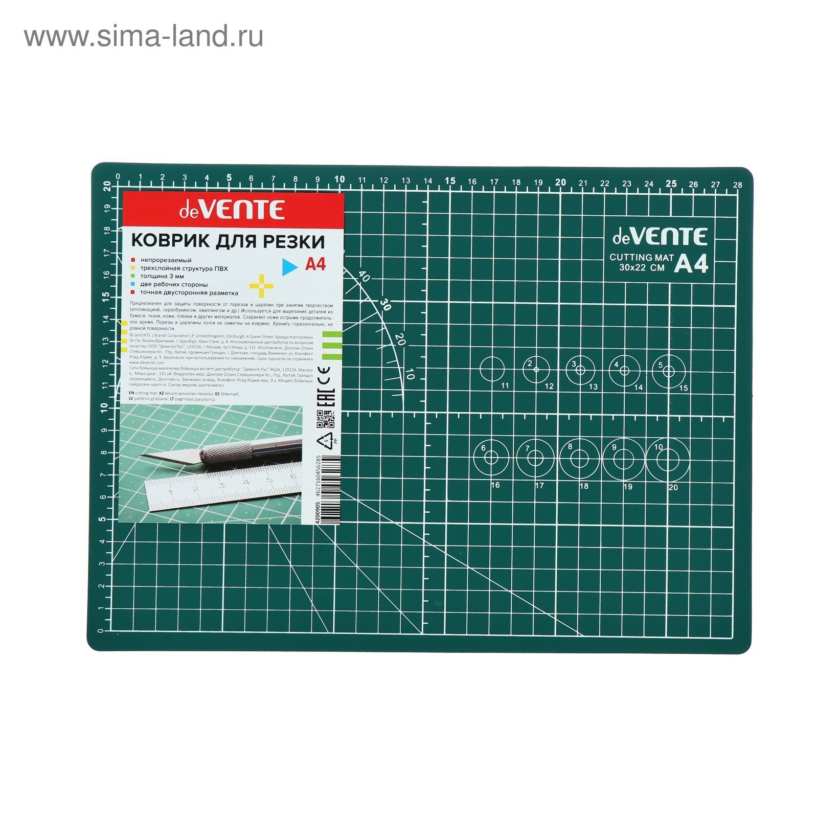 Коврик для резки A4 deVENTE непрорезаемый 3 мм двусторон 3-слойный 4200905 4774671