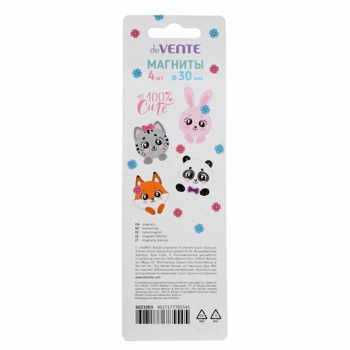 Купить Магниты для досок с дизайном 30 мм, 4 штуки, deVENTE 100% Cute, в картонном блистере, 2 штуки