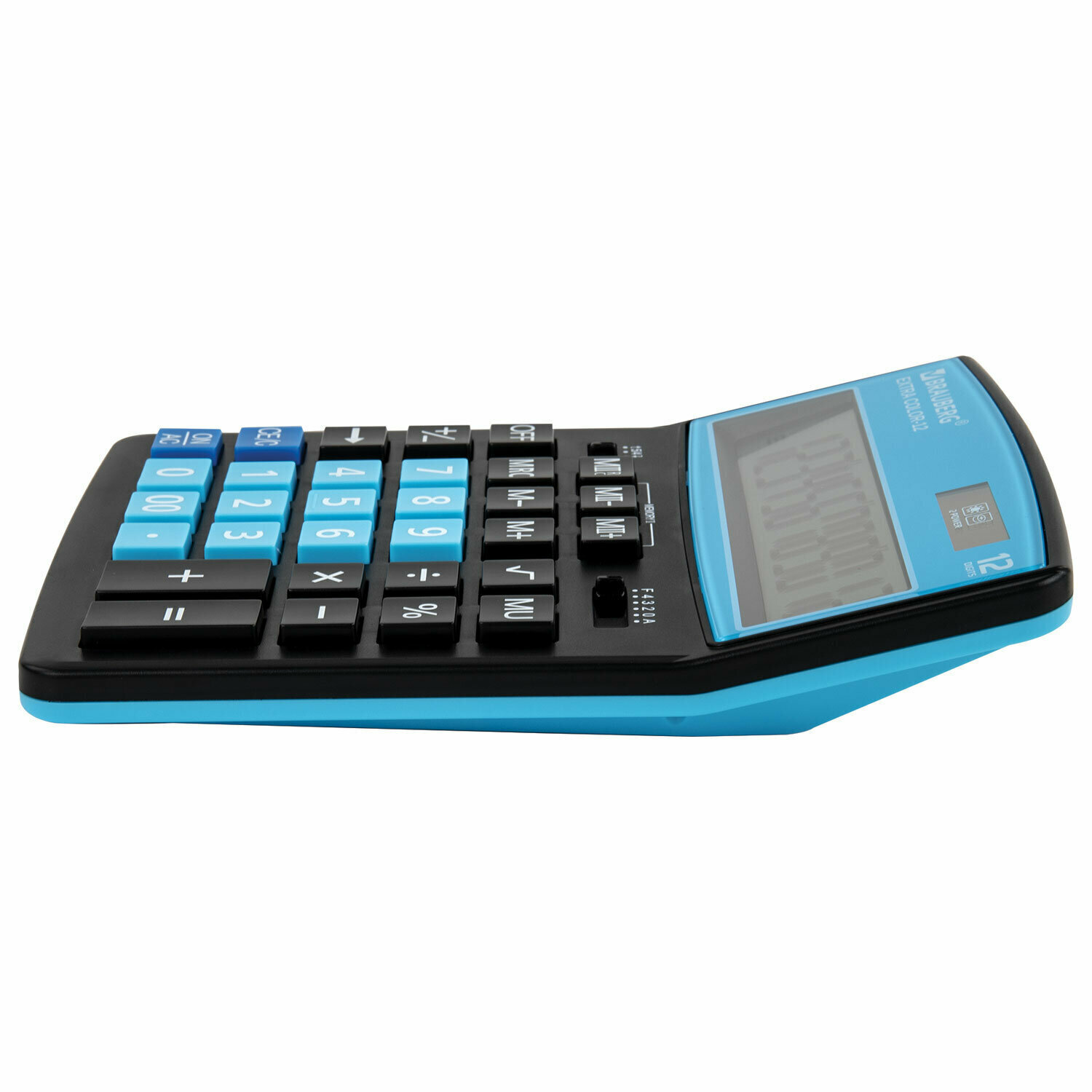 Калькулятор настольный Brauberg Extra Color-12-BKBU, 12 разрядов, двойное питание, черно-голубой (250476)