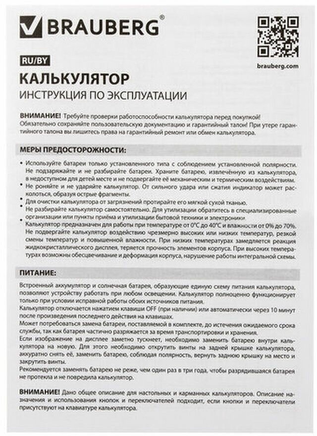 | Подробная комплектация | Калькулятор бухгалтерский - 1 шт. |