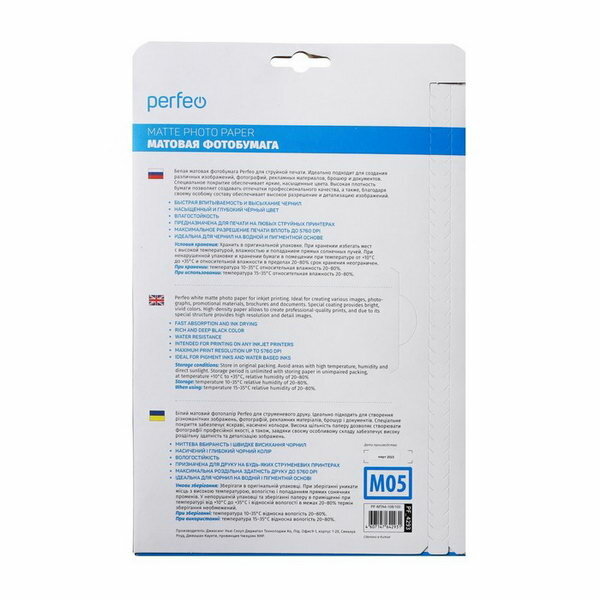 Фотобумага Perfeo A4 108 г/м2 матовая 100л (PF-MTA4-108/100)(M05)