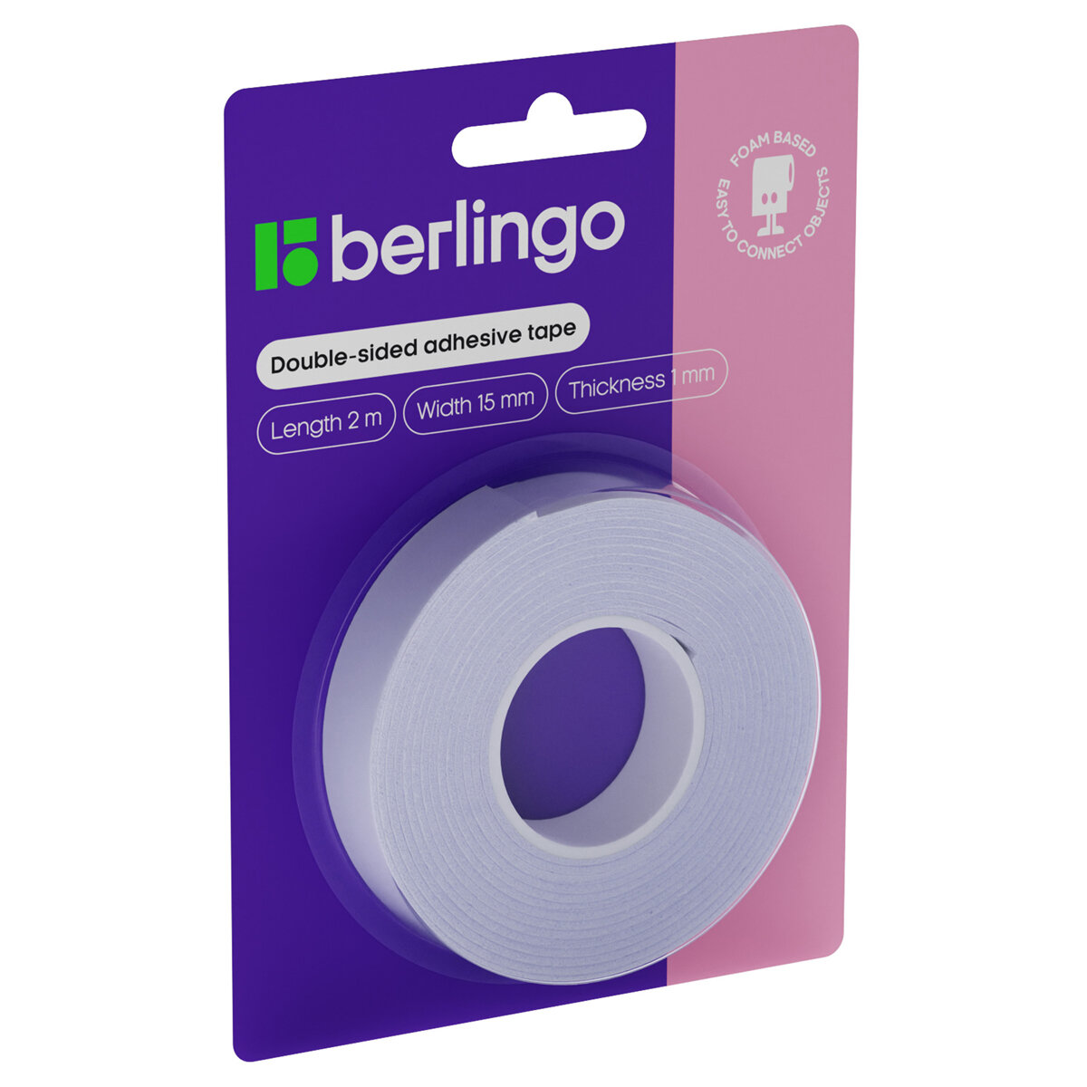 Купить Клейкая лента двусторонняя Berlingo, 15мм*2м, на вспененной основе, 1 мм