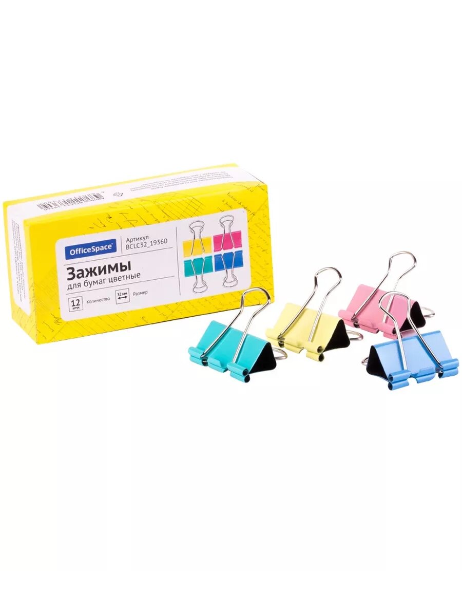 Зажимы 32мм цветные 12штук в упаковке, OfficeSpace BCLC32_19360 интересное: