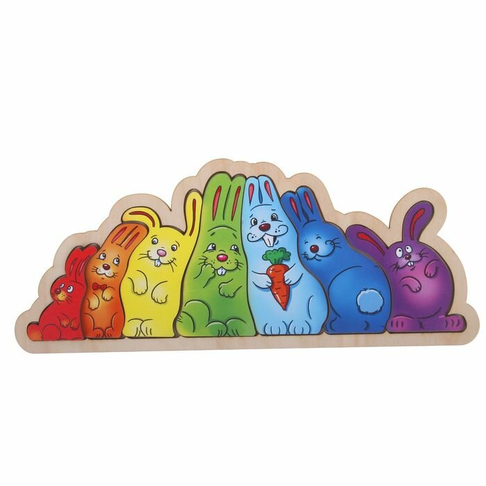 Деревянный пазл-вкладыш Smile Decor "Солнечные зайчики", развивающая игра-головоломка для малышей, зоопазл