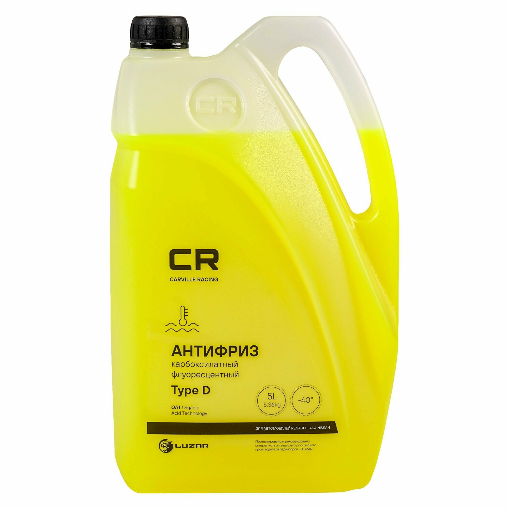 Антифриз для автомобилей Renault (Lada, Nissan) -40°С, карбоксилатный флуоресцентный, OAT, Type D, 5л/5.37кг L2018536 Carville Racing