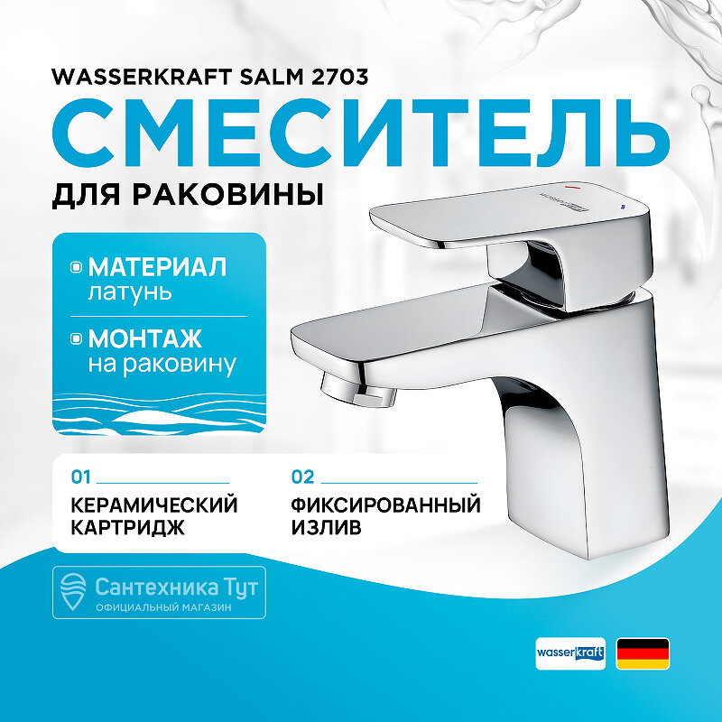 Ниже Вы можете прочитать отзывы на Смеситель для умывальника WasserKRAFT Salm 2703, ознакомится с подробными характеристиками, посмотреть интересные обзоры и фотографии на Смеситель для умывальника WasserKRAFT Salm 2703.