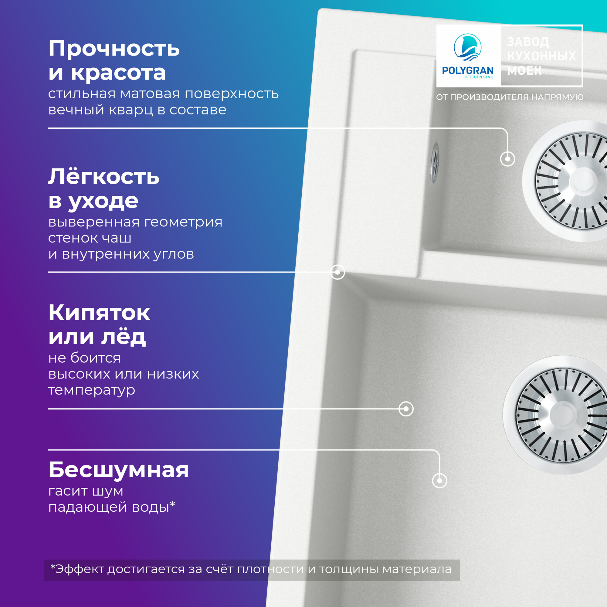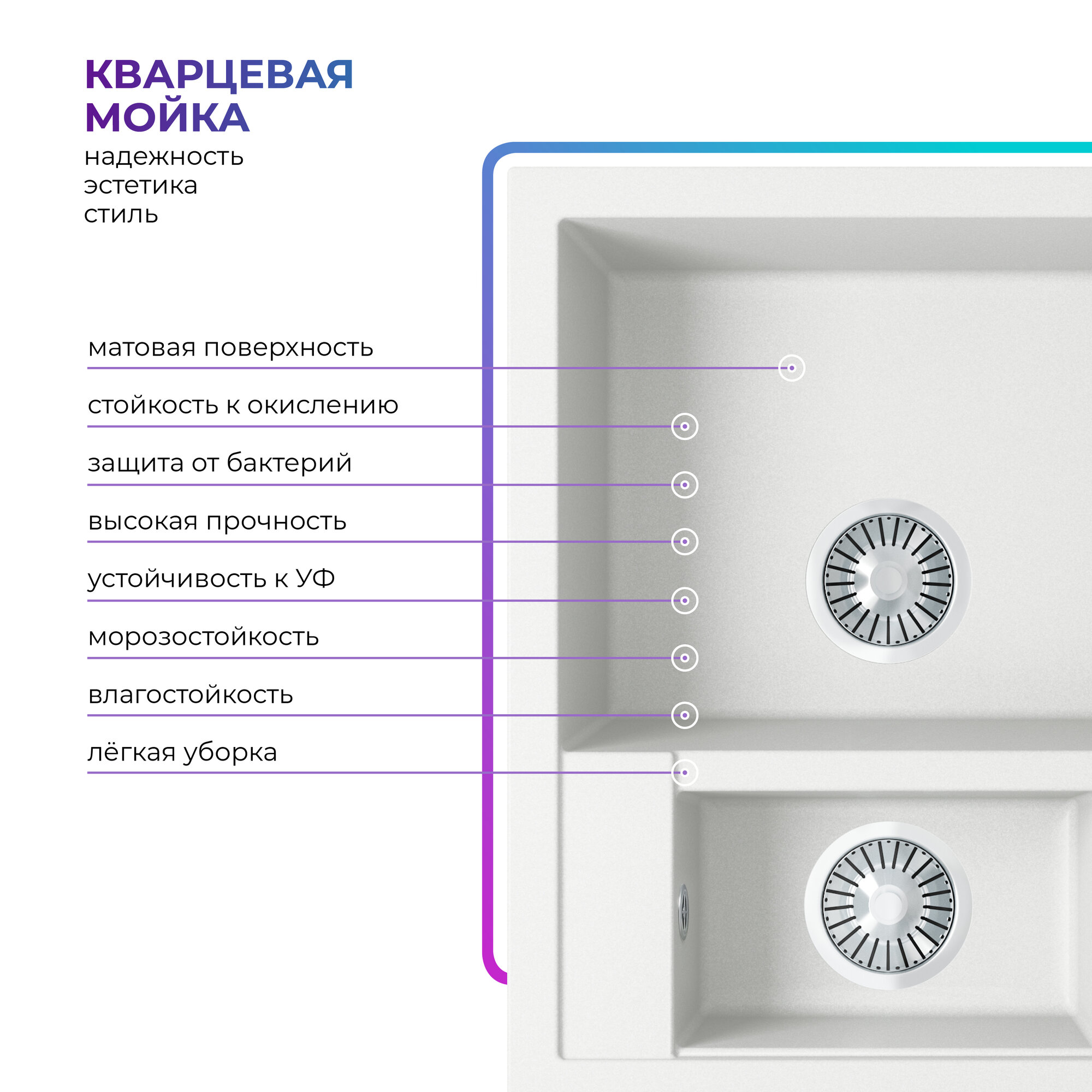 Мойка для кухни TOLERO Classic R-109 каменная врезная двухсекционная Кварц (№923 Белый)