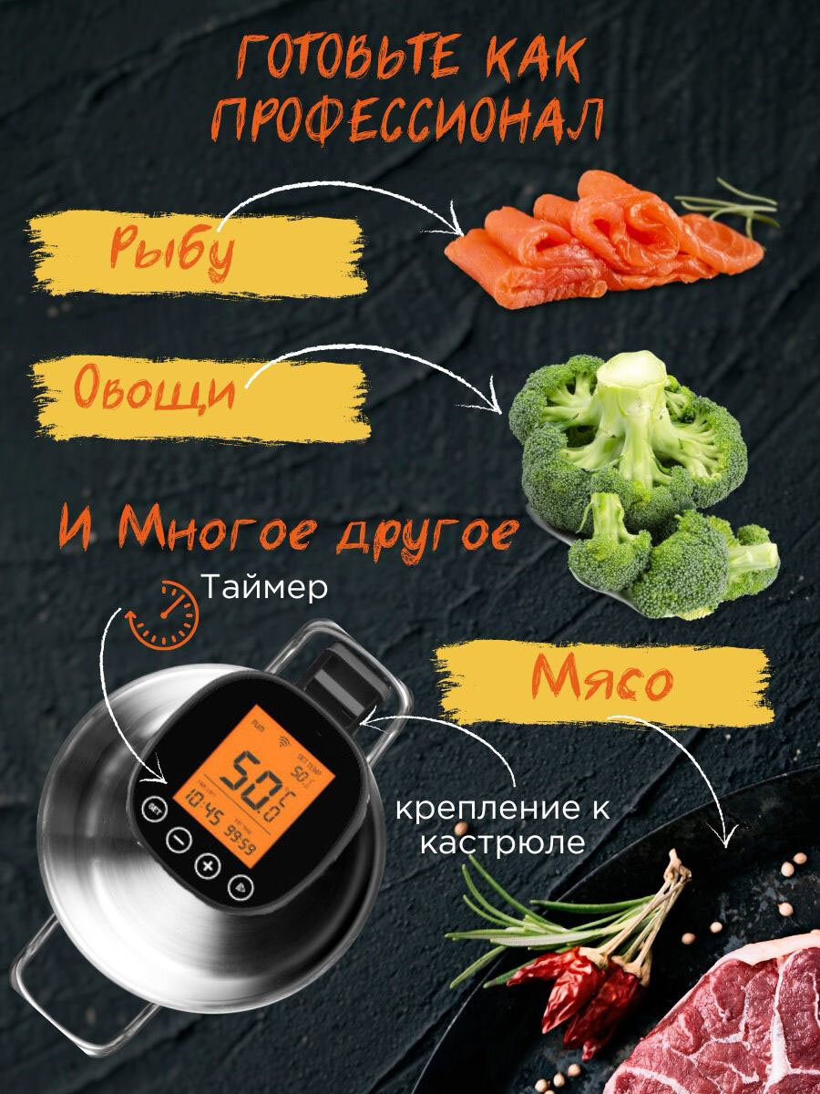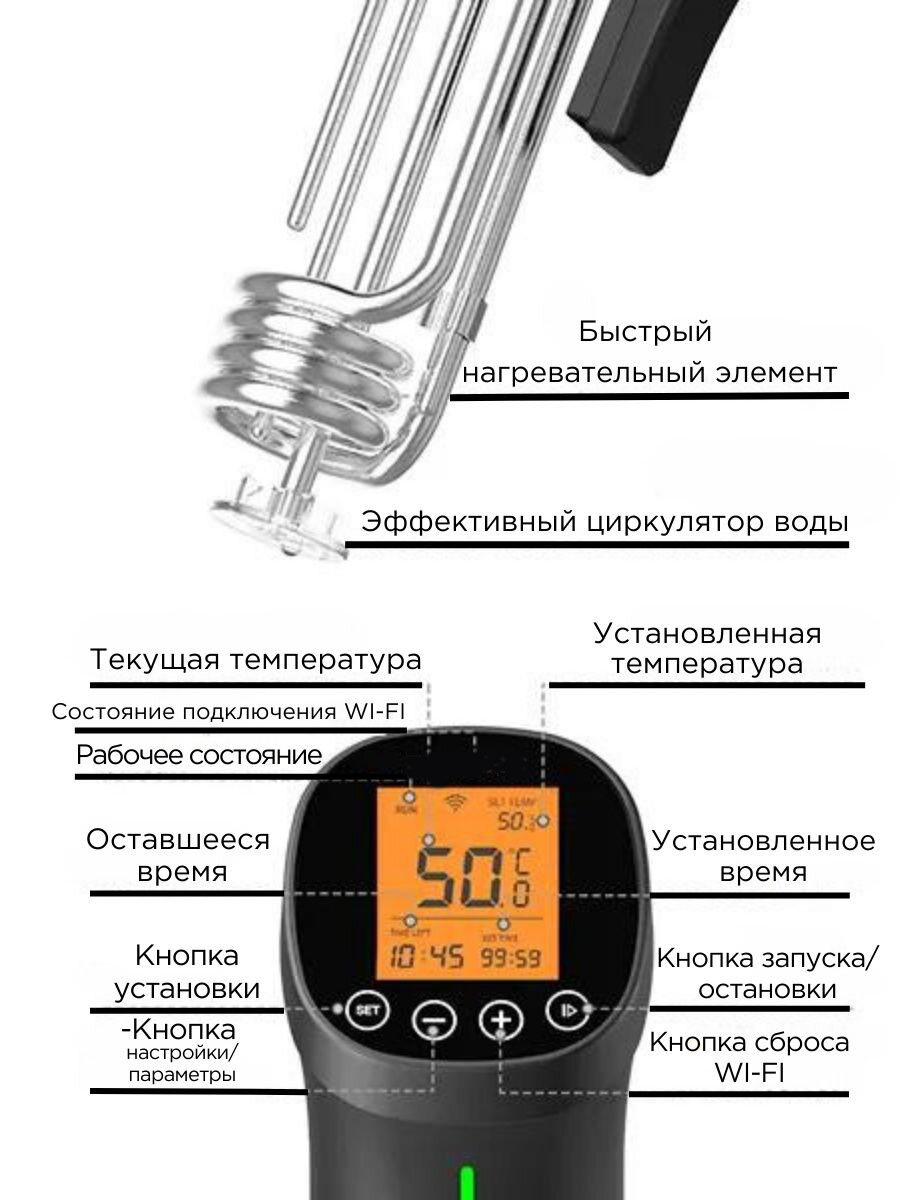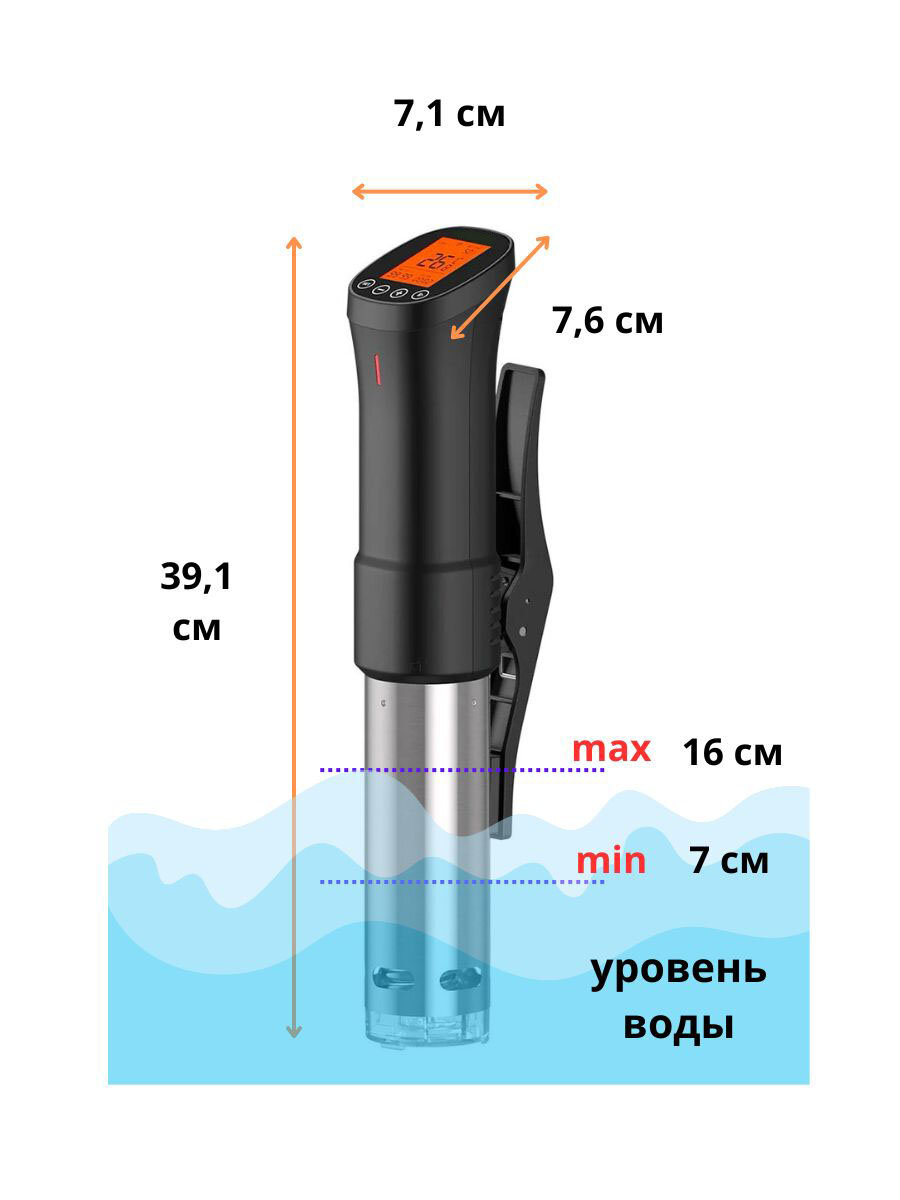 Погружной термостат Prime Grill SV-1MAX, 1800Вт, защита от перегрева, электронное управление, с таймером